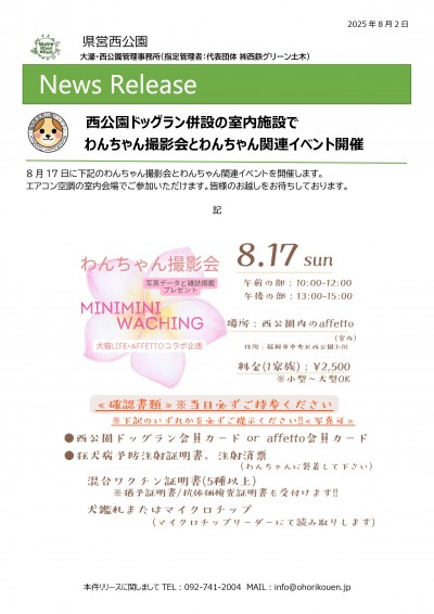 8月17日にわんちゃん撮影会とわんちゃん関連イベントを開催します。