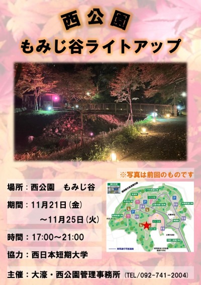 もみじ谷ライトアップを行います 西日本短期大学の生徒さん協力!!