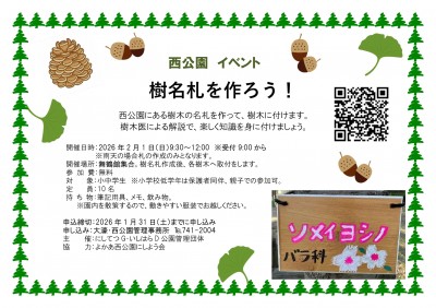 ○西公園の樹木に名札を作ろう!○参加者募集中です