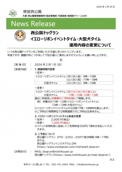 西公園ドッグラン イエローリボンイベントタイム・大型犬タイム 運用内容の変更