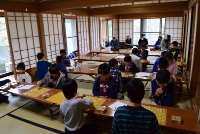 夏休みに大濠公園日本庭園で行った「教育将棋教室」を